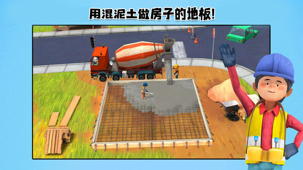 2在工地场景里,小朋友们能尝试操控挖土机、搅拌水泥砂浆、搭建房屋顶面、操作起重设备、驾驶道路清洁车辆,或是给房屋涂刷颜料。
