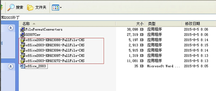 3、安装完兼容包后,看能不能打开office2007的文档,如果不能。也不要慌,我们继续安装office2003的补丁包 需要安装5个补丁 office2003-KB923097-FullFile-CHS office2003-KB923272-FullFile-CHS office2003-KB923088-FullFile-CHS office2003-KB923091-FullFile-CHS office2003-KB923094-FullFile-CHS