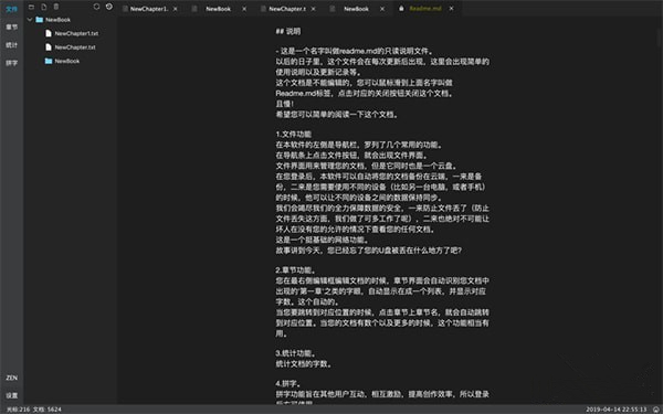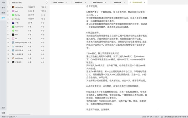 您在最 右侧编辑框编辑文档的时候,章节界面会自动识别您文档中出现的'第一章'之类的字眼,自动显示在成一个列表,并显示对应字数。这个自动的。当您要跳转到对应位置的时候,点击章节上章节名,就会自动跳转到对应位置。当您的文档有数个以及更多的时候,这个功能相当有用。