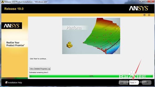 安装进度100%后,点击下一步。