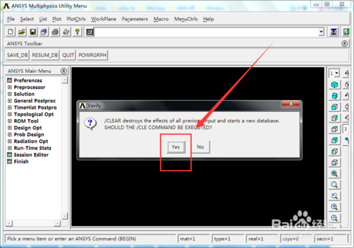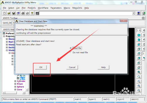 当我们发生了操作失误时,Ansys是没有撤回操作按钮的,我们这时候就可以利用导入之前保存的命令流来实现回到上一步了。首先依次单击菜单栏的【File】——【Clear&star New...】选项。如下图所示。