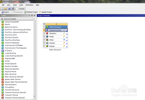 首先,打开ansys,这里以静力学分析为例子,选择Static Structural,导入模型。