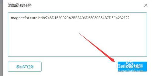 7、弹出添加链接任务窗口,直接将链接粘贴进去,其中我们通过换行可添加多个下载任务,在左下角还可以使用添加BT任务来完成BT文件的下载,完成以上内容点击开始下载即可。