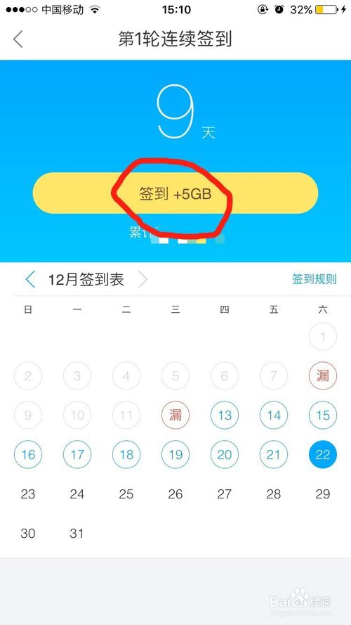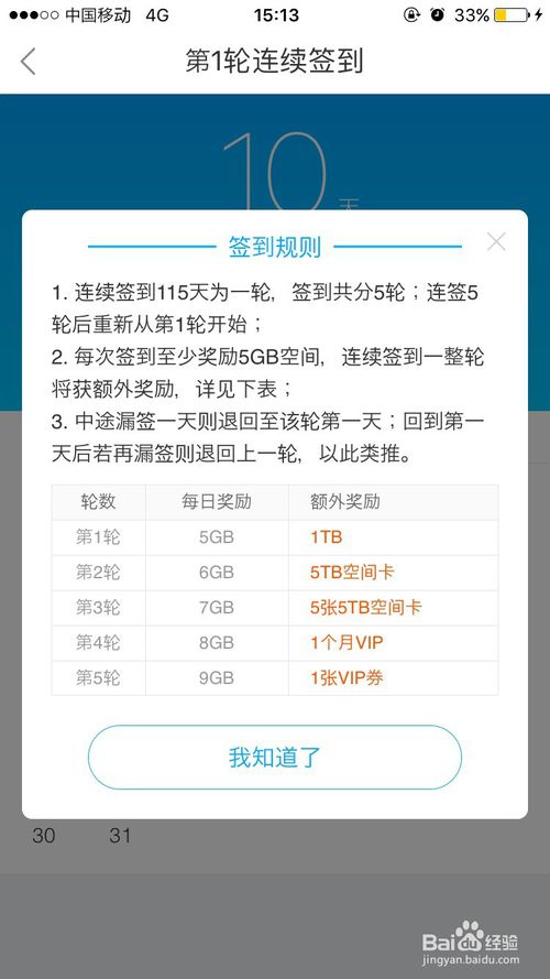3、这个签到分为五轮,随着轮数提高签到所获得的容量亦会增多,增量如图签到规则所示。