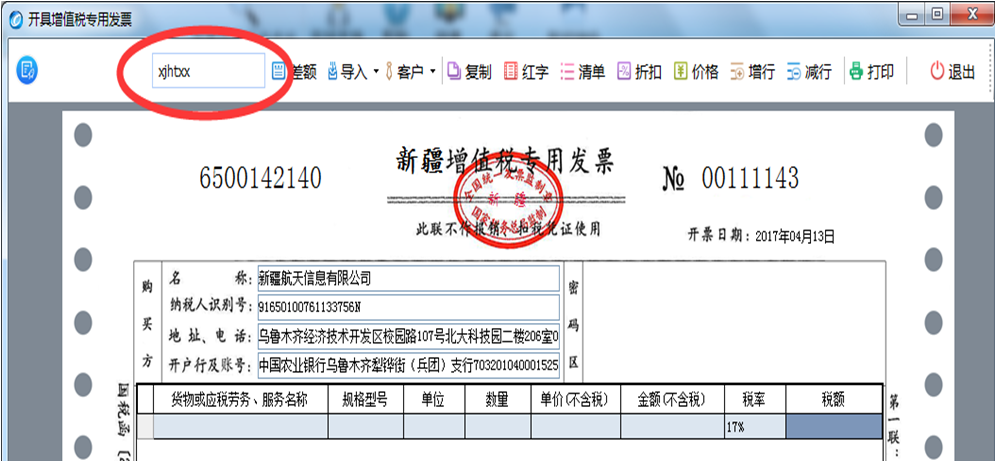方法一:销方在开票软件发票填开界面,用扫码枪扫描受票方二维码开票或直接输入受票方6位开票代码,如图: