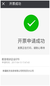 步骤二:受票方通过微信扫一扫/支付宝扫一扫销方提供的二维码,选择发票抬头后发起开票请求,发送成功后,销方根据接收到的开票请求一键开票;