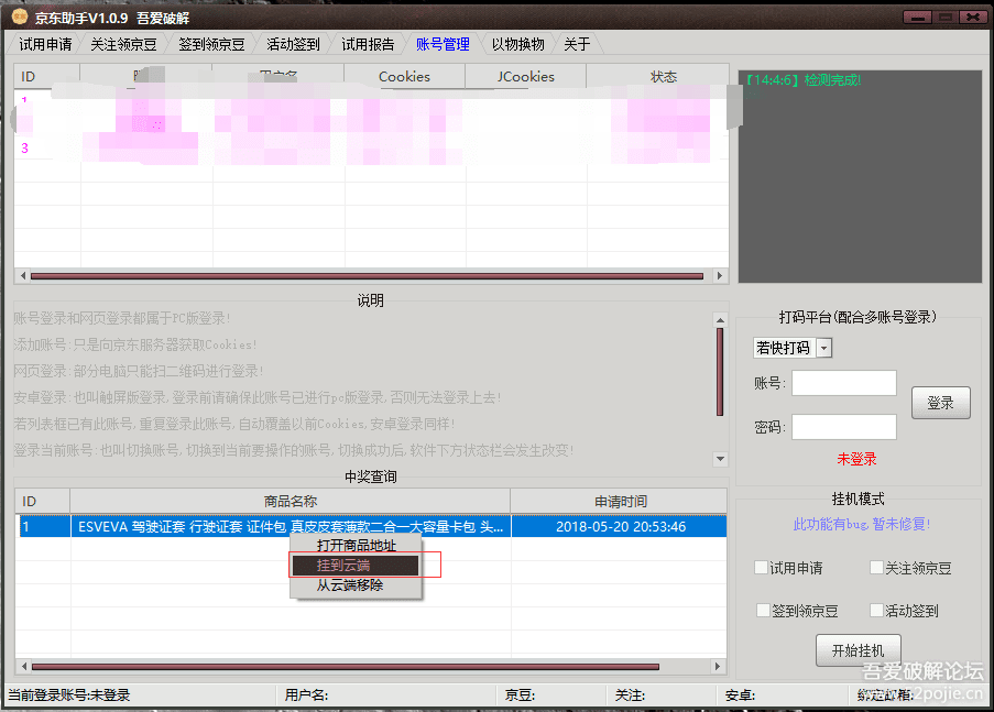 6.京东助手京豆领取支持本文导入,及穷举店铺,迫于无奈关闭云端;