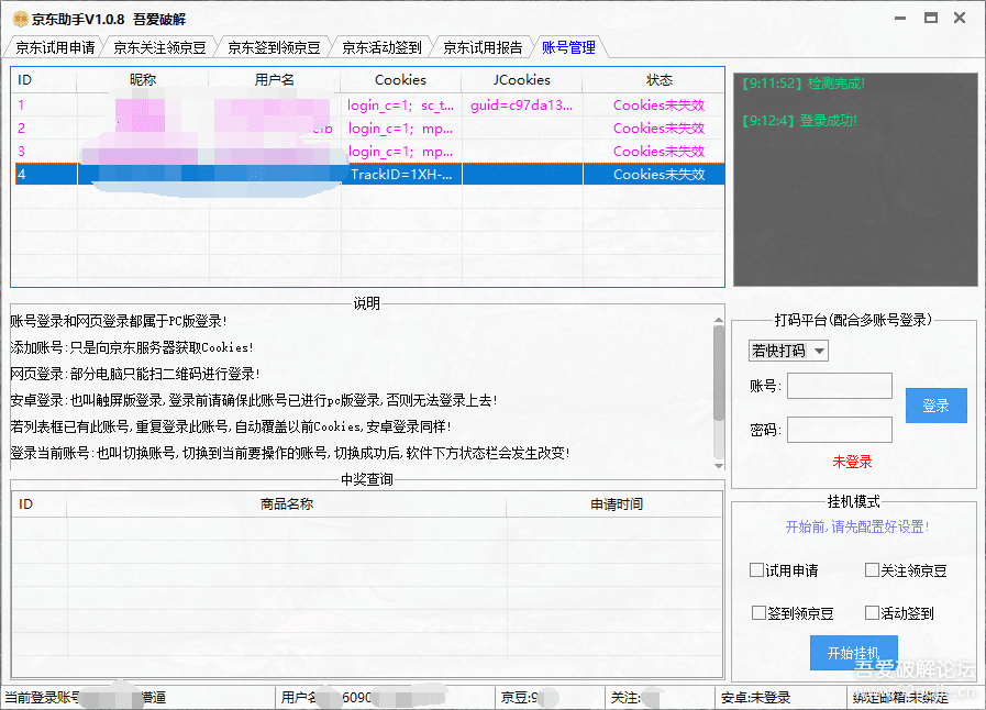 3,修复账号中文无法登录bug,修复登陆成功后,不正确显示Cookies已失效.