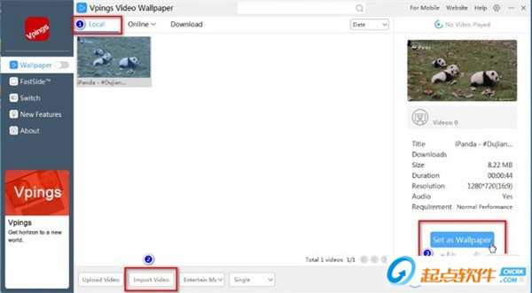 Vpings Video Wallpaper是一款非常优秀的视频桌面软件,内置多款精美好看的视频壁纸供您选择,使用简单一键轻松更换桌面主题风格,虽然是英文界面,但还是一款非常不错的软件。