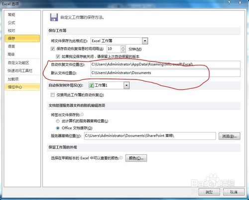 6、如果断电或Excel文件未保存意外关闭则从“自动恢复文件位置”所设定的目录下恢复自动保存文件。