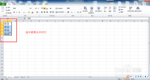 9、合并行与列,鼠标选中需要合并的内容,如图所示: