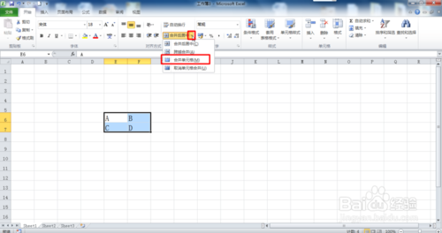6、行与行的合并,也和合并列一样,需要用鼠标选中合并的行,点击合并单元格,如图所示:
