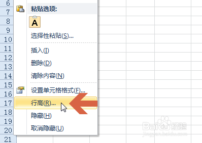 1、将鼠标指针指向要设置行高的行号处,当鼠标指针变成图中所示的形状时点击鼠标右键。