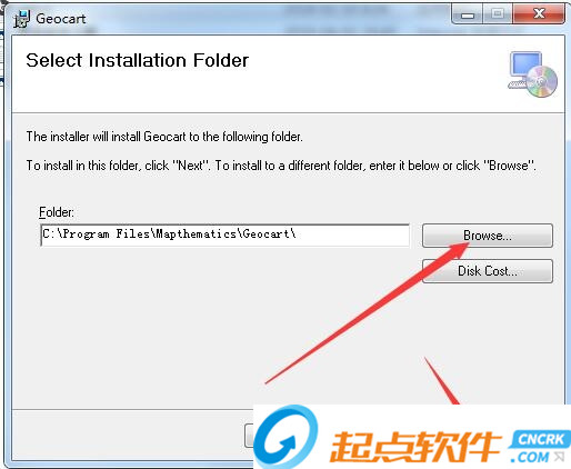 2、选择安装目的地,默认的是C:Program FilesMapthematicsGeocart,可以点browse自定义