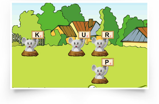 每个小老鼠出现时都会出现一个对应的字母,短时间内快速敲出改字母就会成功抓到一个小老鼠。