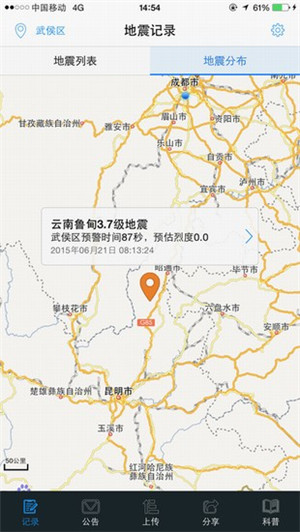 地震预警app此乃是地震预警机构“成都高新减灾研究所”和汶川县防震减灾局共同打造的国家级地震预警应用。地震预警app的精准度和及时性在8.08日的四川阿坝州九寨沟地震当中得到了很好的证明。地震预警app在四川九寨沟即将到来前54秒在四川汶川地区向网友们发起警报!据需这款地震预警软件,是2008年汶川地震发生后,由阿坝州防震减灾局和成都高新减灾研究所联合建设,这次已经是这套系统第38次成功预警我国的破坏性地震。成都高新减灾研究所与全国31个省份的市、县地震部门合作建设的地震预警网,该地震预警网覆盖面积达220万平方公里,占我国人口密集的多震区面积的90%,已成功预警芦山、鲁甸、康定等38次破坏性地震。