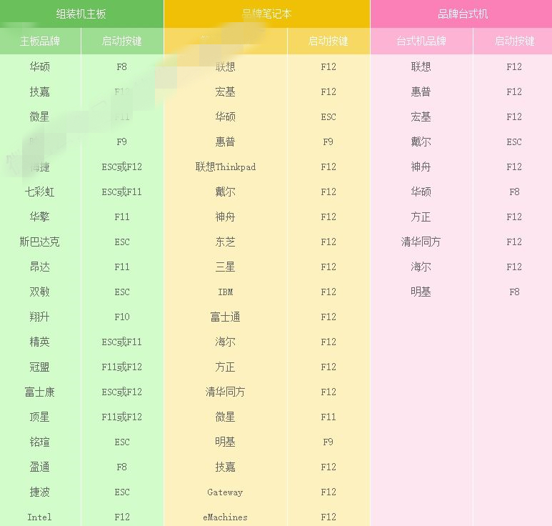 2.设置电脑从U盘启动(常见的方法有两种):第一种:开机画面出现立刻按“快捷键”然后选择U盘启动(以下表格可供参考,适用绝大部分机型)。