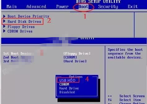 第二种:进入电脑Bios设置U盘为第一启动项(第一种方法使用快捷键启动无法选择U盘时用此方法设置)。由于不同电脑进入Bios设置U盘启动各有差异,以下仅供参考(建议用户根据自己的电脑品牌自行搜索设置方法)。开机出现Press“ F2” to enter SETUP 时,按F2键(具体以自己的电脑开机显示为准)。按键盘上的方向键切换到“BOOT”项,点击“Hard Disk Drives”,将“1ST BOOT” 修改为“USB HDD”按F10保存更改,重启时就会自动载入U盘。