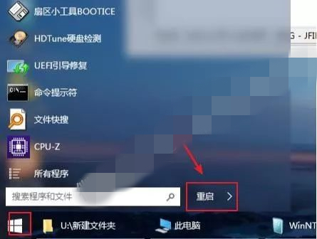 若点击“重启”后电脑未能重新启动,点击左下角图标,点击【重启】即可。