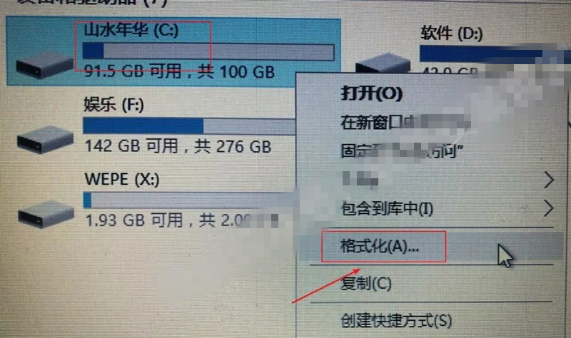 5.进入PE系统后,格式化系统盘。