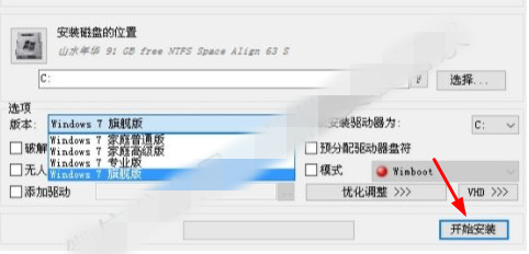 10.选择自己所需要安装的版本(我这里选择Windows7 旗舰版),点击【开始安装】。