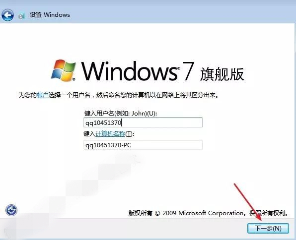 16.设置电脑用户名,点击“下一步”。