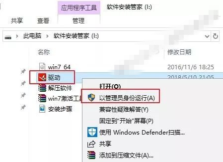 1)打开U盘所在路径,鼠标右击“驱动”,选择“以管理员身份运行”。