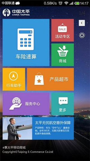 E享太平 —— 中国太平独家推出以车险、理财、少儿、女性、意外等多样化产品的一站式销售服务客户端软件, 整合了太平保险集团在金融领域的优势业务,覆盖日常所需的各项保险、金融服务以及衣食住行多方面服务,它将成为您生活中好帮手,好管家,在这里购买保险不仅价格优惠多多更有丰富礼品送出,在这里提供专业的、一对一的、个性化的金额服务,在这里给予全面的衣食住行的服务支持,它是您不可或缺的实用宝典。