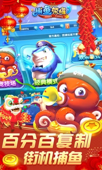《捕鱼荣耀》是一款捕鱼游戏,是由街机捕鱼游戏移植而来,游戏场景采用全3D制作,以深海作为游戏背景。通过各种各样的剧情任务,增加了游戏的挑战性。在捕鱼游戏风靡的今天,采用了全新的技术及游戏特效,并集成了各种玩法,力求打造全新的手机捕鱼游戏。支持全网多人联网,还原街机捕鱼效果,鱼场鱼阵变化无穷!