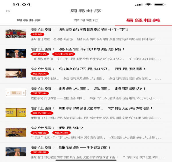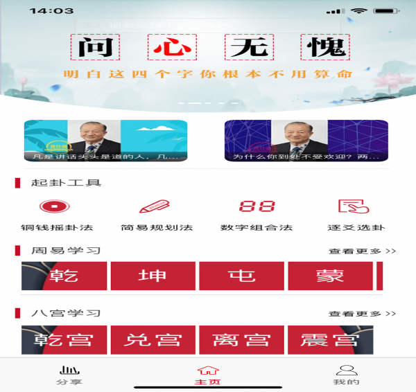 1.增加了易友圈,用户可对卦序撰写笔记并分享点赞;2.增加易经相关内容,通过视频、文章、音频等形式了解全新内容;
