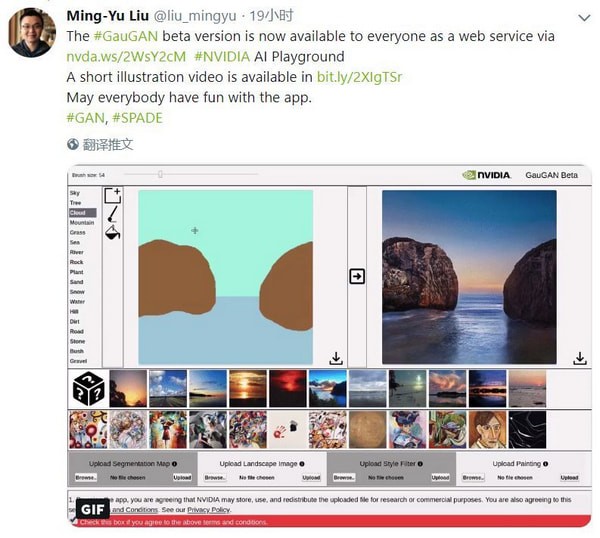 昨天,关于GaoGAN又有新的进展,论文作者之一刘明宇在Tw itter上宣布,GaoGAN软件开放Beta测试,测试采用网页版,完全公开,无需注册和申请。也就是说,之前我们只能看着动图和说明视频惊叹,而现在可以亲自动手当一次“神笔马良”了。当画家,从未变得如此简单!