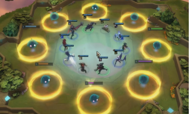共享英雄池的选秀环节。这是一个咸鱼翻身机制,所有玩家都会被传送到地图中央,从一个随机抽出并全员共享的英雄阵容中选取一个免费的英雄,名次越靠后的玩家拥有更优先的选择权。