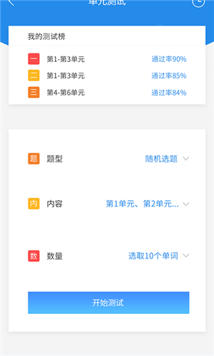 5、单词测试:三种测试题型,准确了解自己的词汇水平。背完单词可及时测试,检测自己的记忆情况。