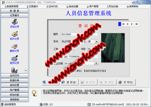 人员信息登记管理工具,本工具主要是能方便比如企业级行政管理单位记录人员详细信息的工具,本工具支持打印照片等功能