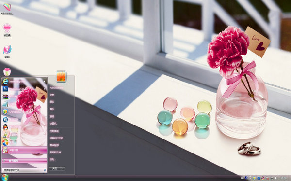 唯美花香电脑主题:洁白的窗户,一对寓意美好的情侣对戒与一朵粉红色花朵飘逸的清香,到处洋溢着清新又唯美的画面,给予你的桌面带来更美的意境~!