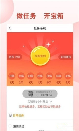 日常任务、高额任务,宝箱奖励,让阅读更有价值,轻松赚钱日进斗金,内外兼修好帮手。