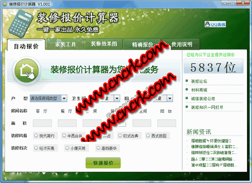 装修要花多少钱?只需要简单几个信息,一键一家装修网的装修报价计算器就可为您快速报价,免去您奔波之苦...........一键一家的装修业内专家通过数年研究,精心打造出业内独一无二的“装修报价计算器”。任何人只需选择户型、厨房、阳台、卫生间、面积、档次与风格几个条件,便可自动计算出当地装修报价,获得准确的装修报价清单。还可通过此报价选择相应的装修效果图,并相对应精准联系设计师与装修公司,材料供应商。所有业主装修时不必为获得一份合理的装修报价伤透脑筋,选择装修公司也不必东奔西跑,点点鼠标即可!加上装修一键一家的监督与规范,让业主装修不仅省钱,而且省心!