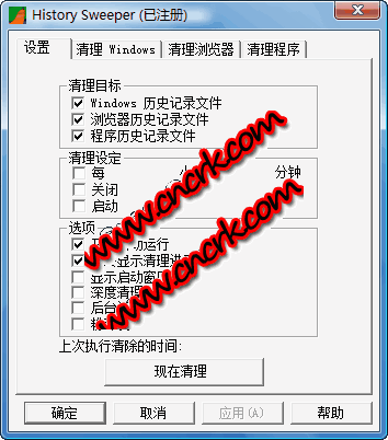 History Sweeper V3.28 汉化绿色特别版 history sweeper 是一个可以清除你计算机中无用文件和历史记录的一个非常小巧的软件,如注册表无用项,文档、运行、查找记录。清理的非常快速、安全。该软件为绿色软件,复制到任意目录下即可使用。 双击reg文件导入注册表后即可实现注册