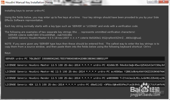 8,回到License Administrator,点击菜单File >> Manually Enter Keys,将刚才那5行依次粘贴过来: