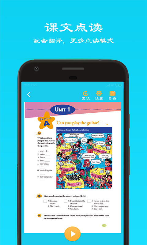 1.英语电子课本点读随身听课文、背单词;强大的点读机功能,语音跟读不用愁。