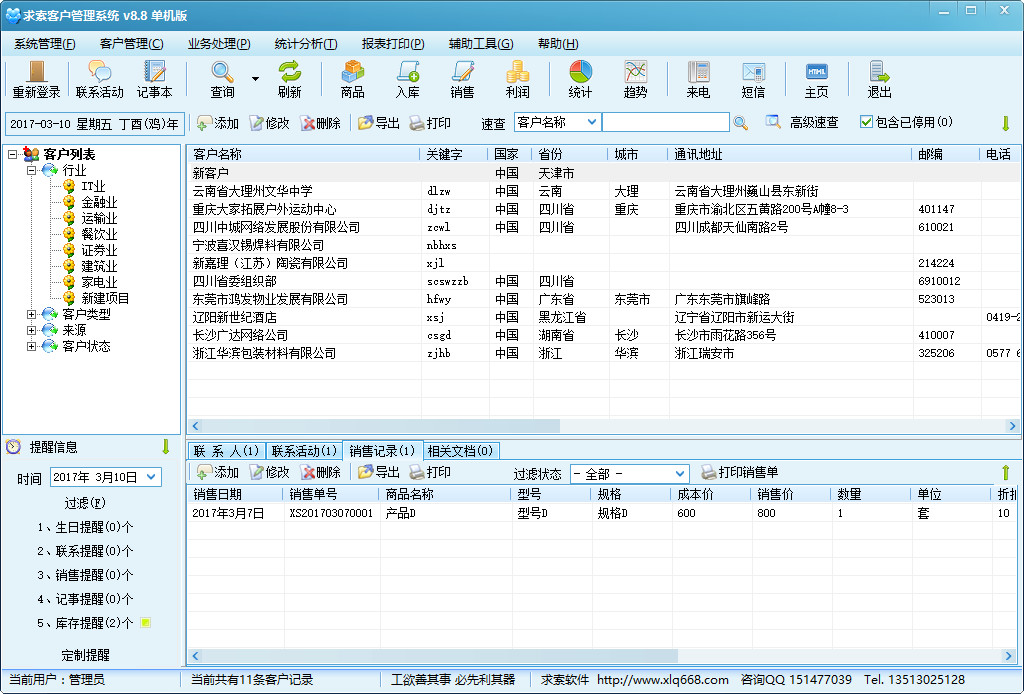 求索客户管理系统基于先进的CRM营销理念设计,集客户档案、销售联系、业务往来于一身,以凝聚客户关系、提升资源价值为核心,求索客户管理系统系统基于先进的CRM营销理念设计,集客户档案、销售联系、业务往来于一身,以凝聚客户关系、提升资源价值为核心,将潜在客户变为现实客户、从而提升销售量、提高用户的满意度,并增加企业竞争力。软件以客户信息为主线,将客户的意向、跟进、实施、服务等有机结合起来,形成一个完整的销售与客户管理信息平台。【软件特点】