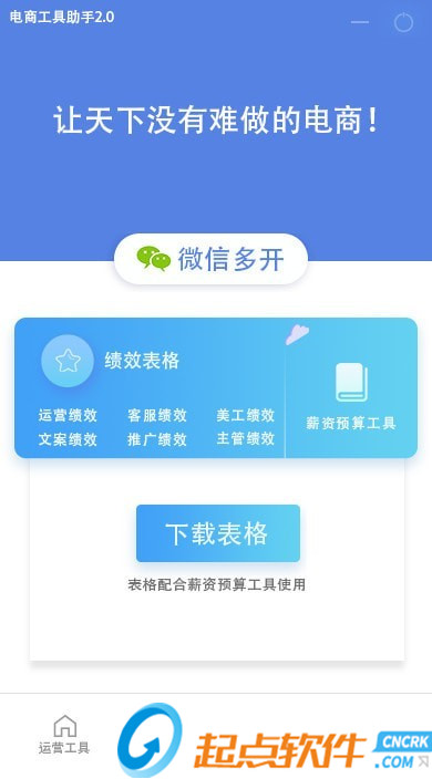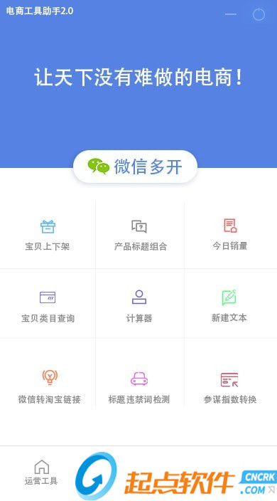 电商工具助手是一款专业的电商辅助软件。电商工具助手功能强大,拥有运营工具、设计工具、绩效工具、辅助工具这四大类实用工具集合,而且完全免费。有需要的用户欢迎在本站下载。