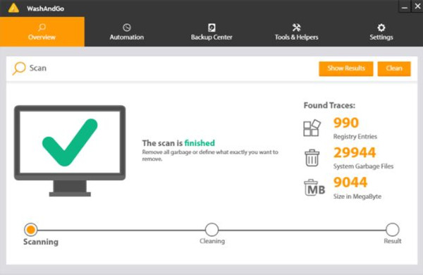 WashAndGo能够检测系统错误并进行纠正。你的电脑将变得更加稳定。可以识别和纠正以下错误:有缺陷的快捷方式,Windows注册表错误,最近的文件夹中的孤立条目以及Windows中的错误卸载条目。