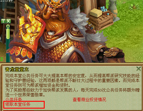 2、到青龙堂堂主那,点“领取本堂任务”,如下图。