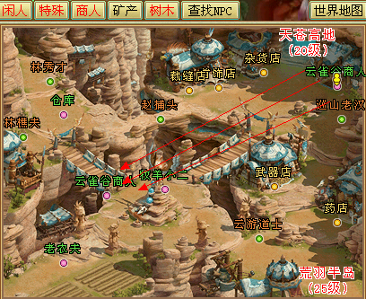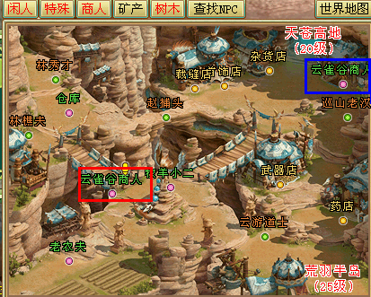 6、到了云雀谷,会看到小地图上有两个商人,如下图。