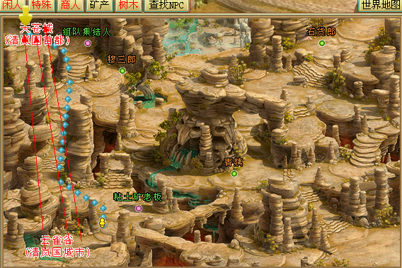 5、接着用飞行旗飞往云雀谷。(我是青岚国的跑商,如果是其他国家就请飞到本国二级城市,总之以此类推,具体按帮主或堂主分配给你的要求进行。)