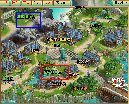 11、到了堂主所说的卖东西的“星霜城”,我们会发现有两个商人,如下图。