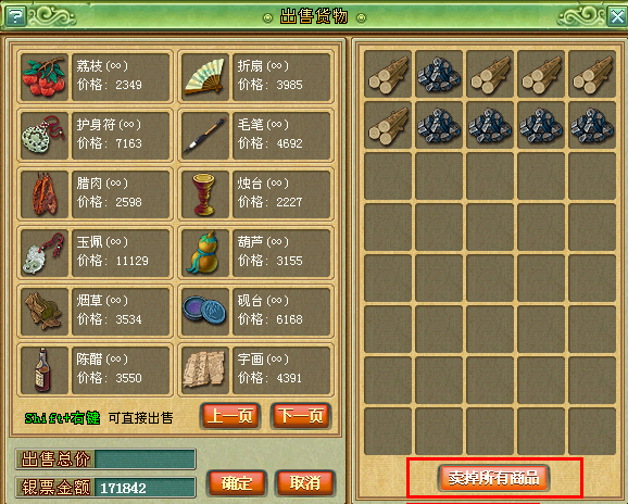 14、点“我要卖东西”,发现价格是7204,比之前的那个高,果断卖!点“卖掉所有商品”,如下图。