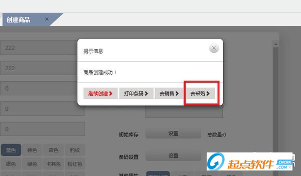 商品创建好以后,就可以去采购进货了。根据提示进入采购页面,在输入框中输入货号或商品名称——填写数量(或连接扫码枪直接扫码)——点击采购入库——确认采购,商品就采购成功了。)