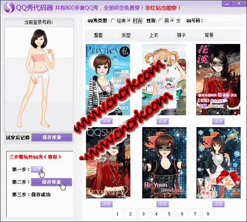 QQ秀免费穿 V2.1 绿色免费版 qq秀免费穿提供800多套qq秀免费穿,不要红钻、不要q币、非会员都能免费穿,qq秀有整套男女时尚型、经典型。更有单品更有单品包含qq秀发型、qq秀上衣、qq秀裤子、qq秀背景、qq秀表情等800种等您来挑选,全部免费穿。